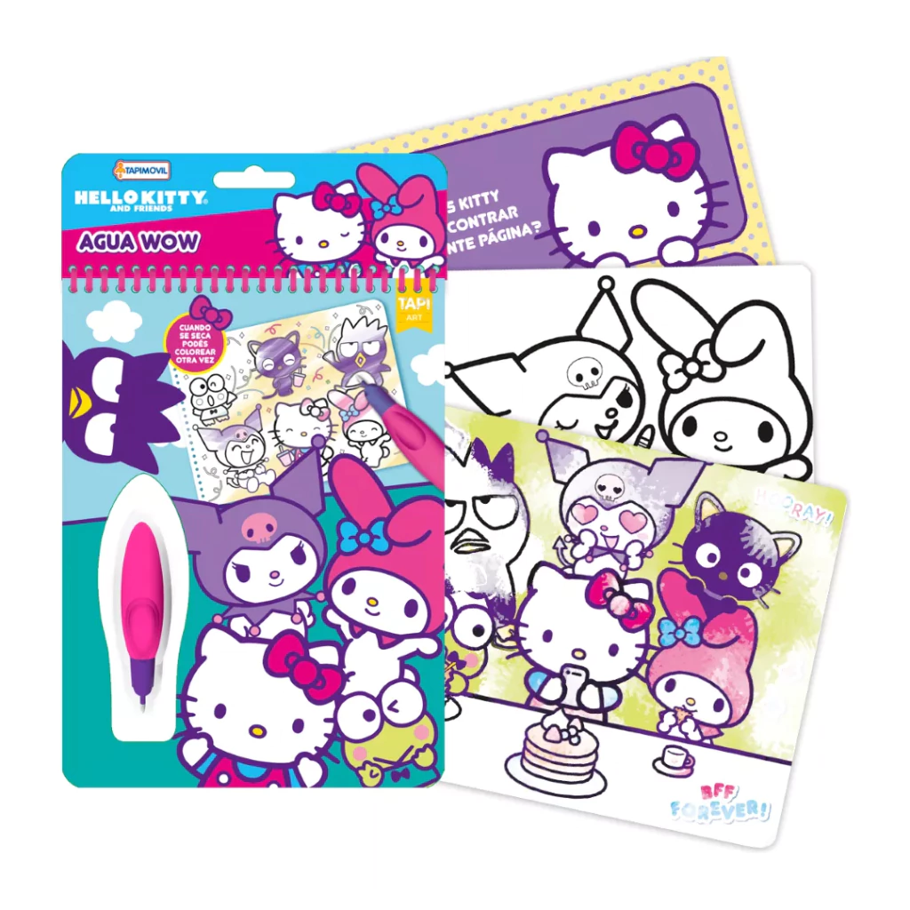 ¡Descubre la magia del color con el Agua Wow Album Para Colorear Hello Kitty Y Amigos! Este encantador libro de Sanrio ofrece 5 hojas reutilizables que cobran vida con un toque de agua.