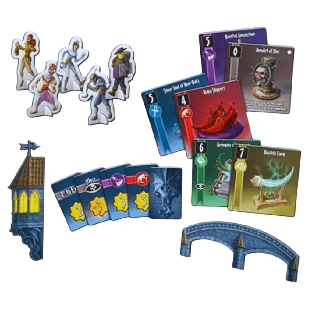 En Asalto a la Torre del Mago en 10 minutos, te convertirás en un ladrón audaz que intenta saquear la torre de un poderoso hechicero. Cada turno es una oportunidad de moverte entre habitaciones, recolectar tesoros únicos como pinturas, artefactos, joyas y fósiles, y competir con otros jugadores por la mejor botín.