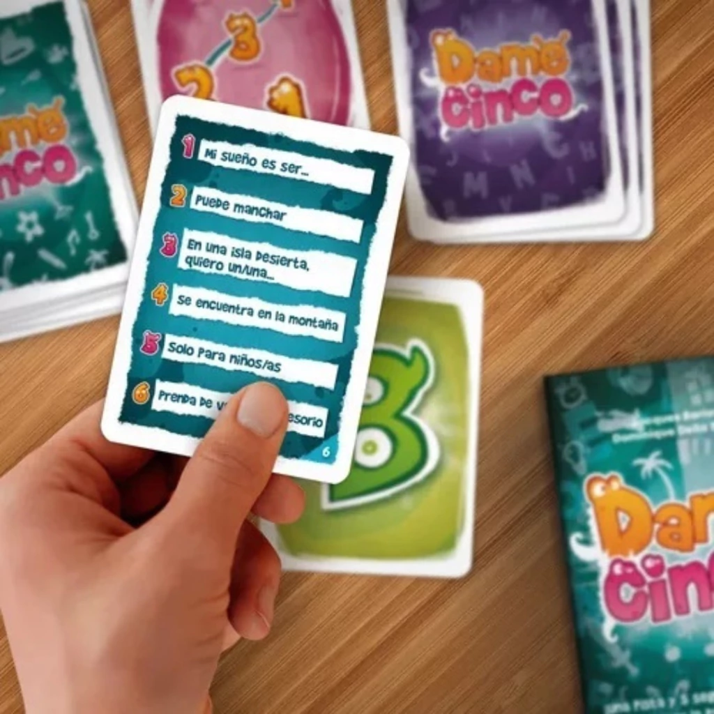Sumérgete en la emoción del juego de mesa de cartas que pondrá a prueba tu rapidez mental y creatividad. DAME CINCO es ideal para reuniones con amigos y familiares, generando momentos llenos de risas y sorpresas.