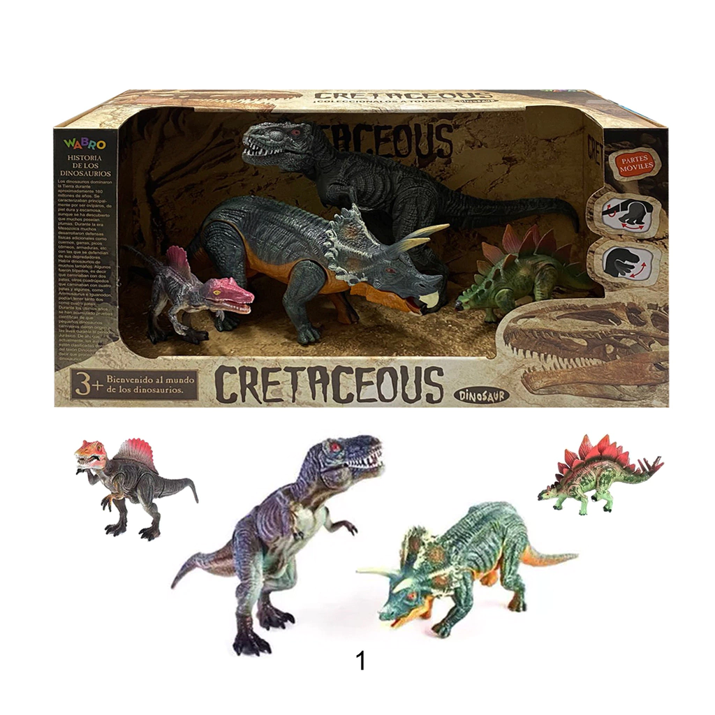 El set de figuras Dinosaurios Cretaceous T-rex es perfecto para los pequeños amantes de los dinosaurios. Con 4 figuras detalladas y realistas del temible T-rex, este playset les permitirá recrear emocionantes aventuras prehistóricas.