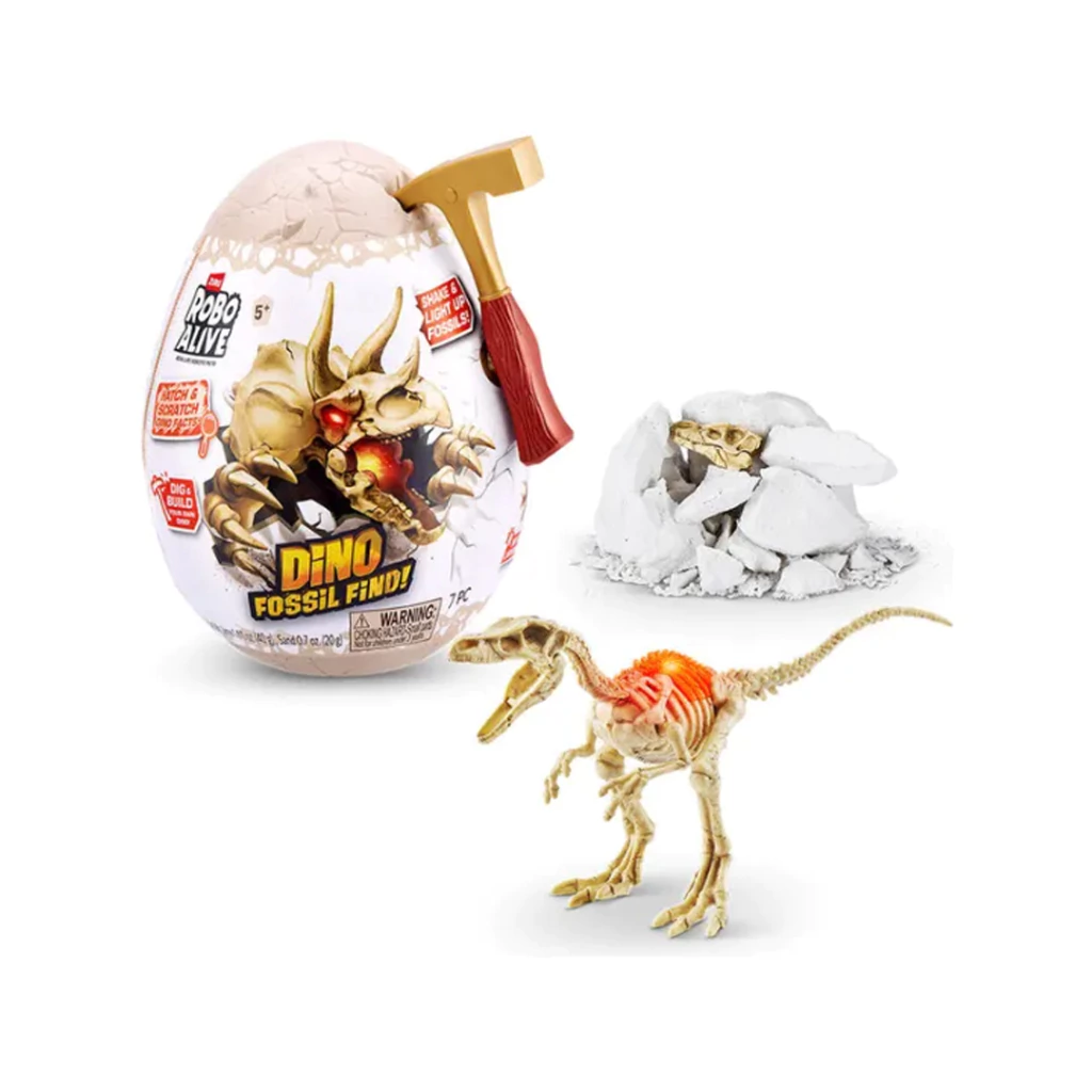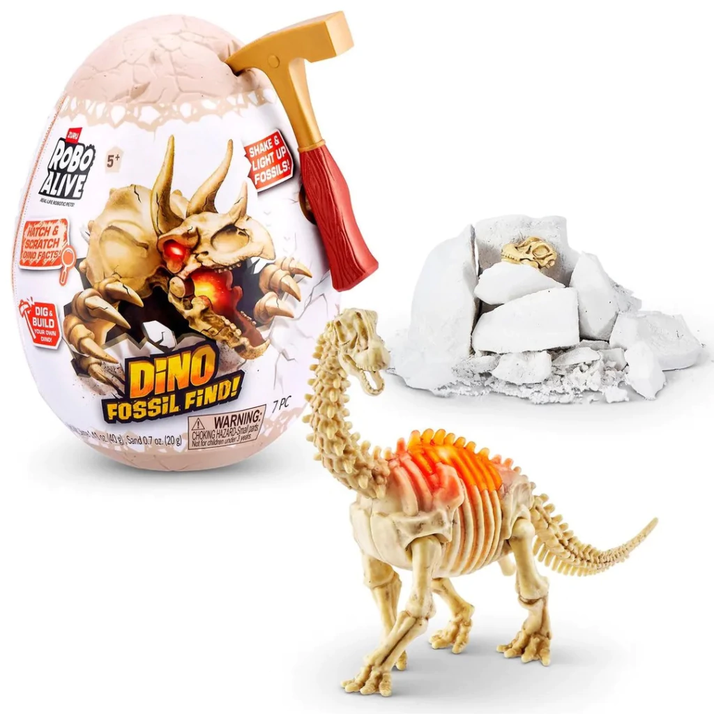 Cada huevo esconde una sorpresa única: uno de los 8 dinosaurios diferentes para coleccionar. ¡La emoción está garantizada en cada descubrimiento! Además, al ensamblar los huesos, observa cómo el esqueleto cobra vida con luces épicas al chocar y batallar.