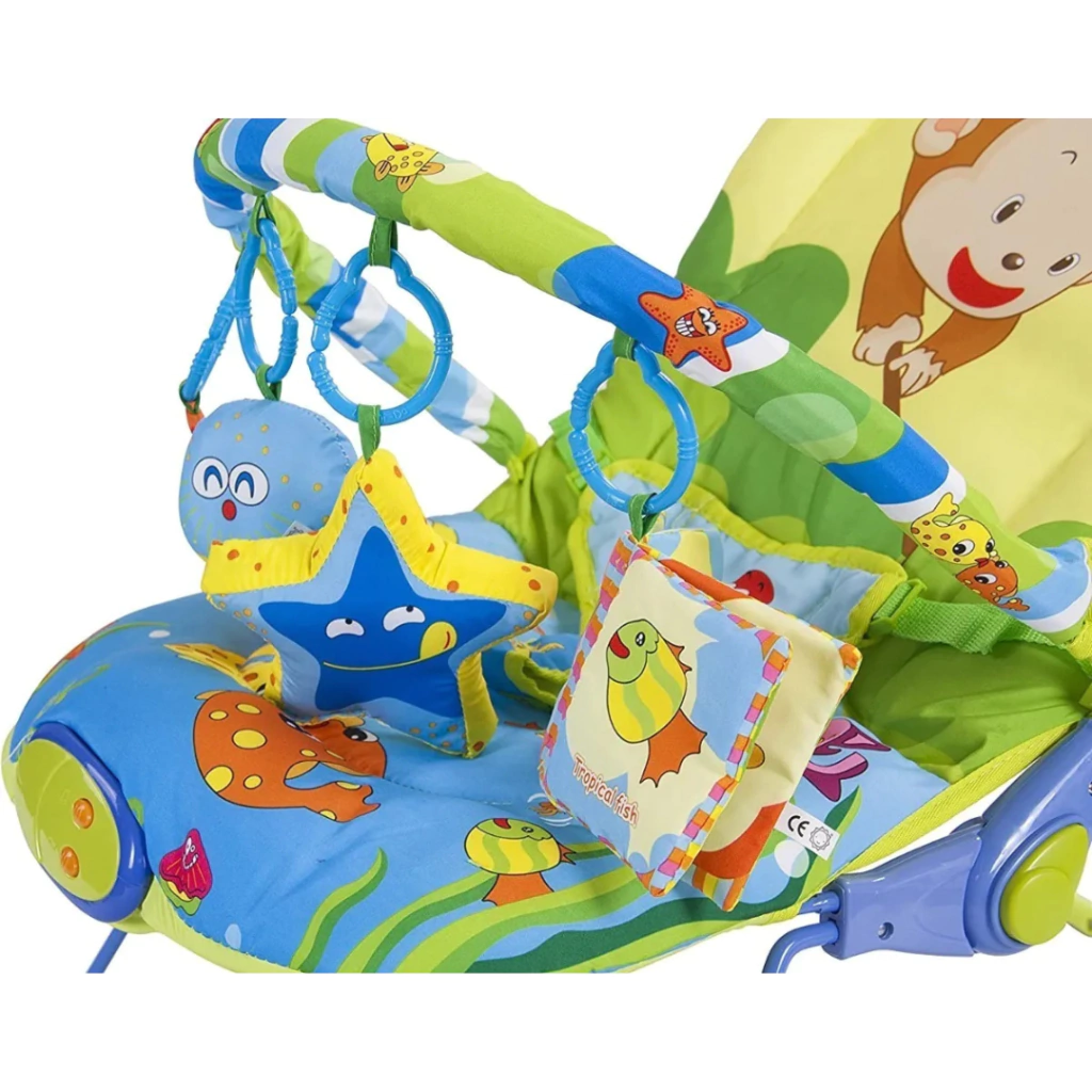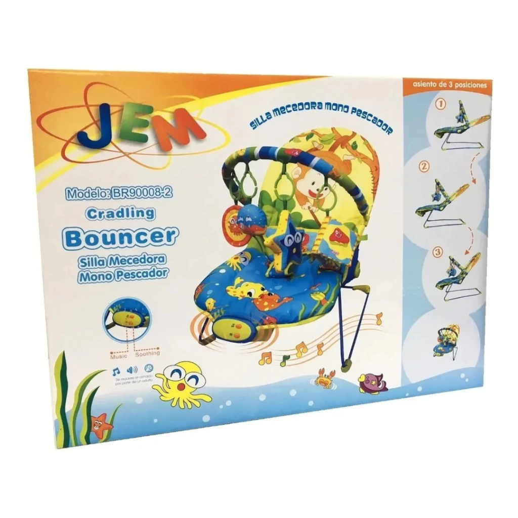 La Silla Mecedora Musical para Bebé de marca JEM, modelo BR 90008-2 Mono Pescador, es esencial para calmar a tu pequeño. Con 12 melodías y suaves movimientos vibratorios, ofrece tres niveles de reclinado. Ideal para bebés de hasta 9 kg, es fácil de transportar. Proporciona un ambiente relajante y seguro, ayudando a que tu bebé descanse mejor.