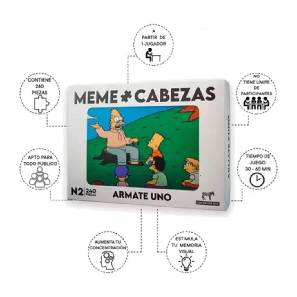 ¡Descubre la diversión infinita con el Juego de Mesa Memecabeza Fight! Esta exclusiva Edición Abuelo Simpson te invita a sumergirte en el mundo de los memes y los rompecabezas. Perfecto para disfrutar solo, en familia o con amigos, este juego promete horas de entretenimiento y desafío.