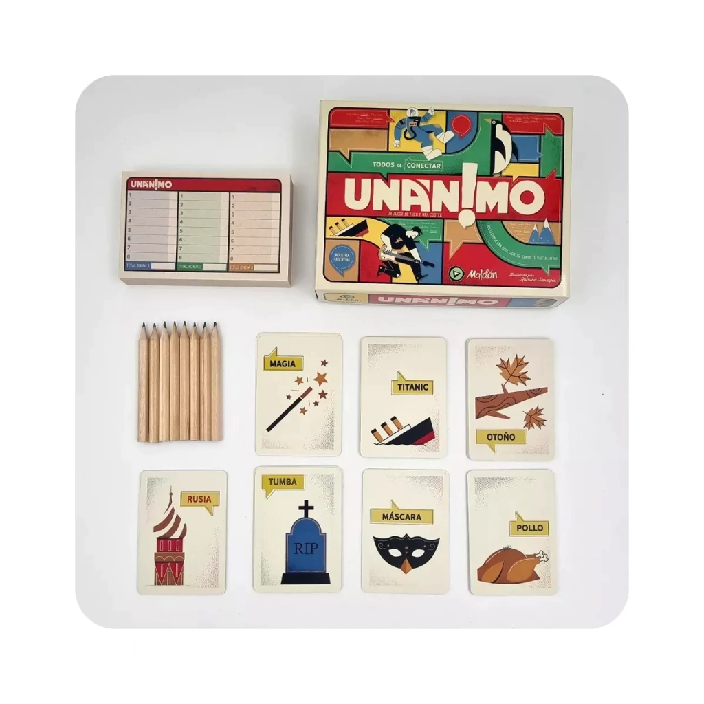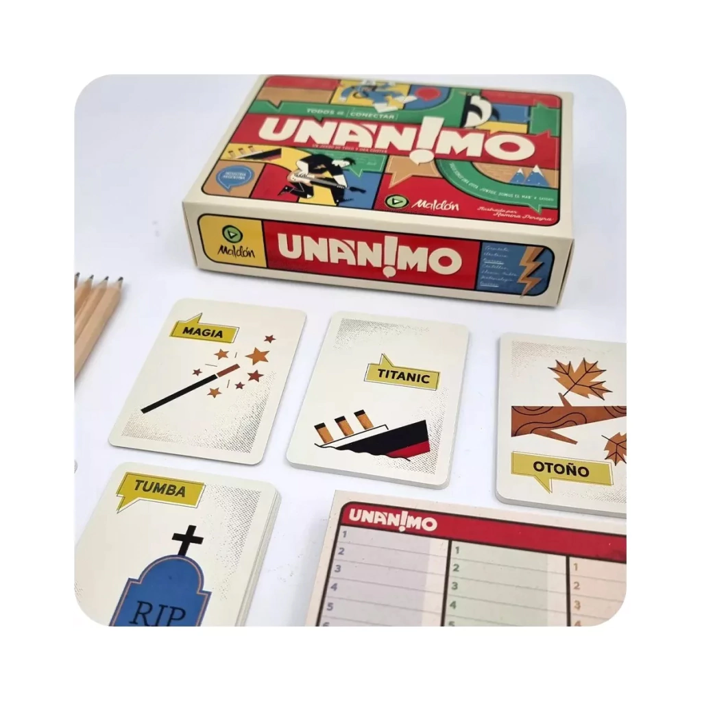 Unanimo es un emocionante desafío para 3 a 8 jugadores, diseñado para disfrutar en familia o con amigos.