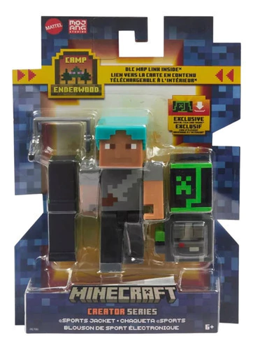 - Descripción: Las figuras de Creator Series son recreaciones de los peculiares personajes digitales que se encuentran en el NUEVO y emocionante mapa DLC de Minecraft Camp Enderwood. Cada figura de acción de Camp Enderwood de 3,25 pulgadas tiene cinco accesorios. Cámbialos y recrea emocionantes actividades y aventuras en el campamento del juego. ¡Cada figura incluye 2 códigos DLC! 1 para un mapa DLC de Camp Enderwood y otro para un accesorio exclusivo en el juego que los jugadores no pueden encontrar en ningún otro lugar.