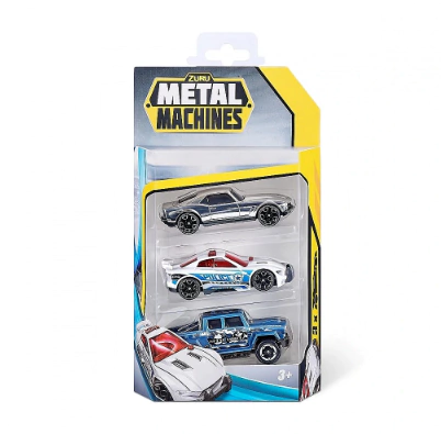 ¡Desata la emoción con los Metal Machines! Esta nueva serie trae una colección fascinante de los autos die-cast más increíbles. Comienza tu colección con el pack de 3 autos, cada uno con un diseño único y nombre individual.