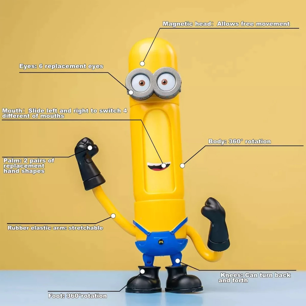 Descubre el Kit Mega Minion Tim de 12 cm, inspirado en Mi Villano Favorito 4. Este juguete con licencia oficial te permite personalizar tu propio Minion con 4 bocas, 6 ojos y 4 manos intercambiables. Los brazos moldeables y articulaciones giratorias en rodillas y tobillos ofrecen movilidad ilimitada. Incluye una base independiente para exhibición. Ideal para fanáticos y coleccionistas que desean revivir sus escenas favoritas de Despicable Me.