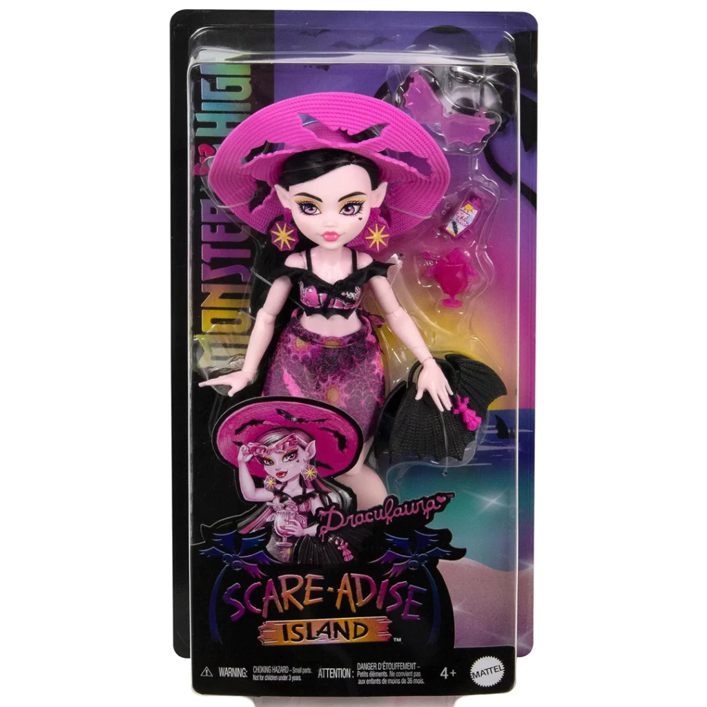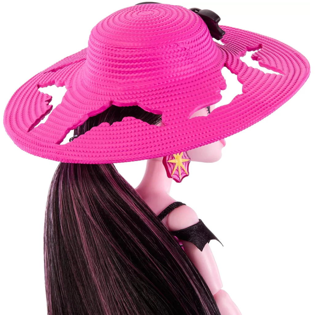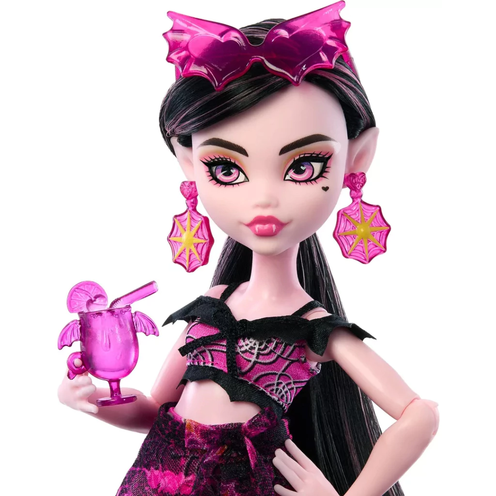 ¡Es hora de unas vacaciones vamptásticas! La muñeca Draculaura de Monster High está lista para deslumbrar en la playa con su estilo único y protector solar.