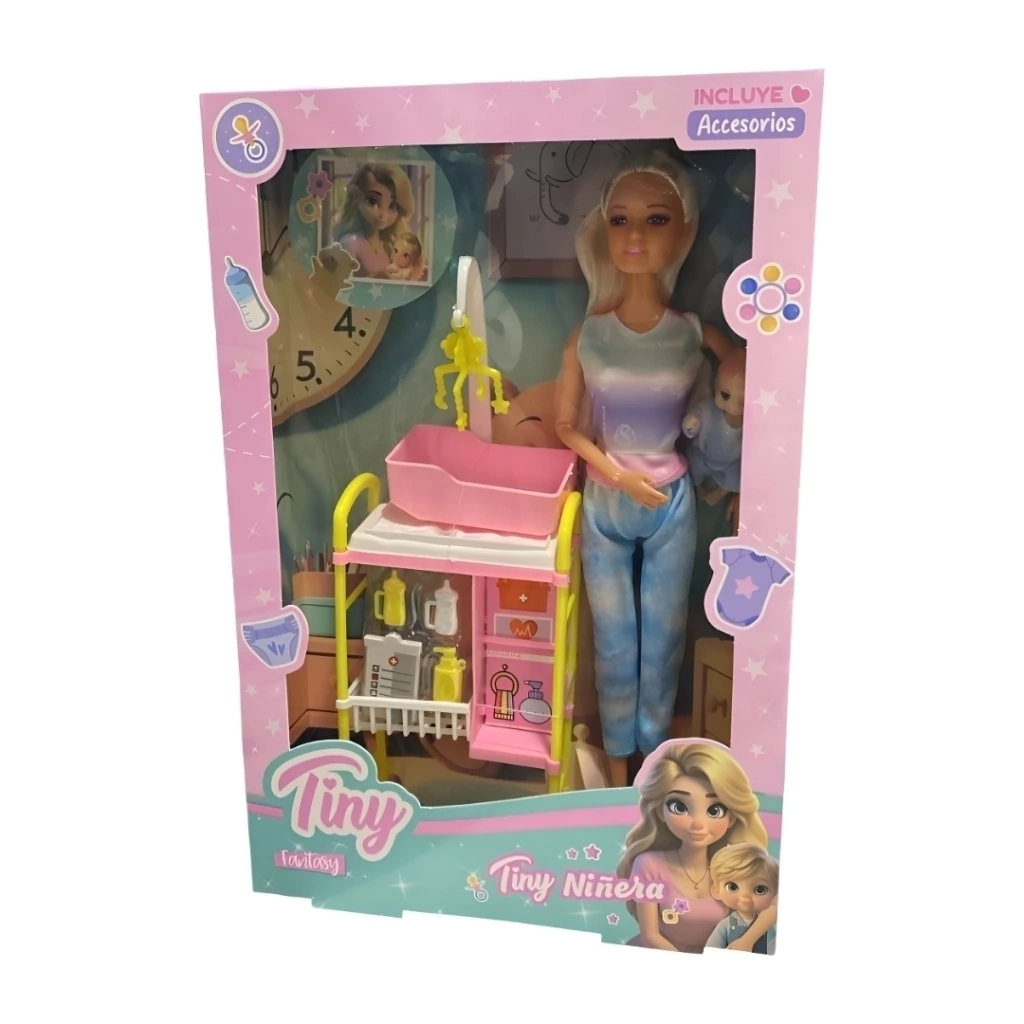 El material plástico de alta calidad asegura durabilidad y resistencia, permitiendo que los pequeños disfruten de horas de juego sin preocupaciones. La Muñeca Tiny Niñera no solo es un juguete, sino una herramienta educativa que ayuda a los niños a aprender sobre el cuidado y la responsabilidad de una manera lúdica y entretenida.