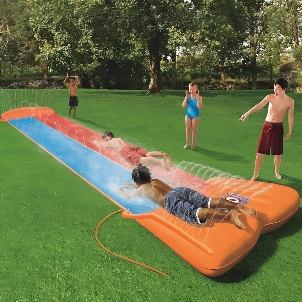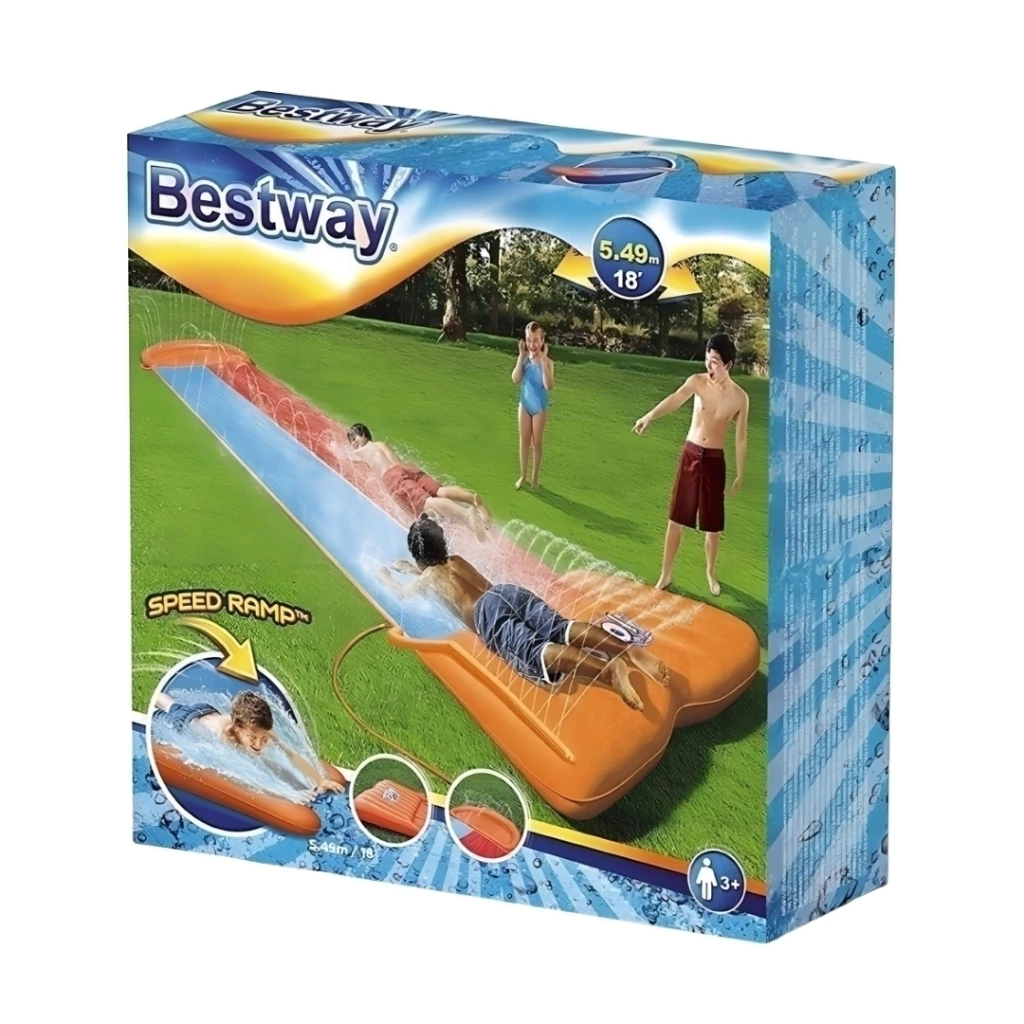 Fabricada con materiales de alta calidad, esta pista de agua garantiza seguridad y durabilidad. Su longitud de 5,49 m y un ancho de 1,3 m ofrecen un espacio amplio para deslizarse y refrescarse. Además, su diseño atractivo y funcional se integra perfectamente en cualquier jardín o área de piscina, convirtiéndola en el centro de atención en las reuniones familiares y fiestas de verano.