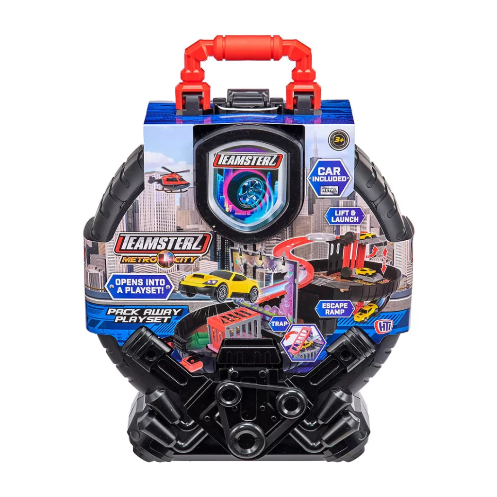 La marca Teamsterz garantiza calidad y entretenimiento duradero. ¡Prepárate para la aventura y descubre la velocidad con el Teamsterz Pista Valija Metro City Negra!