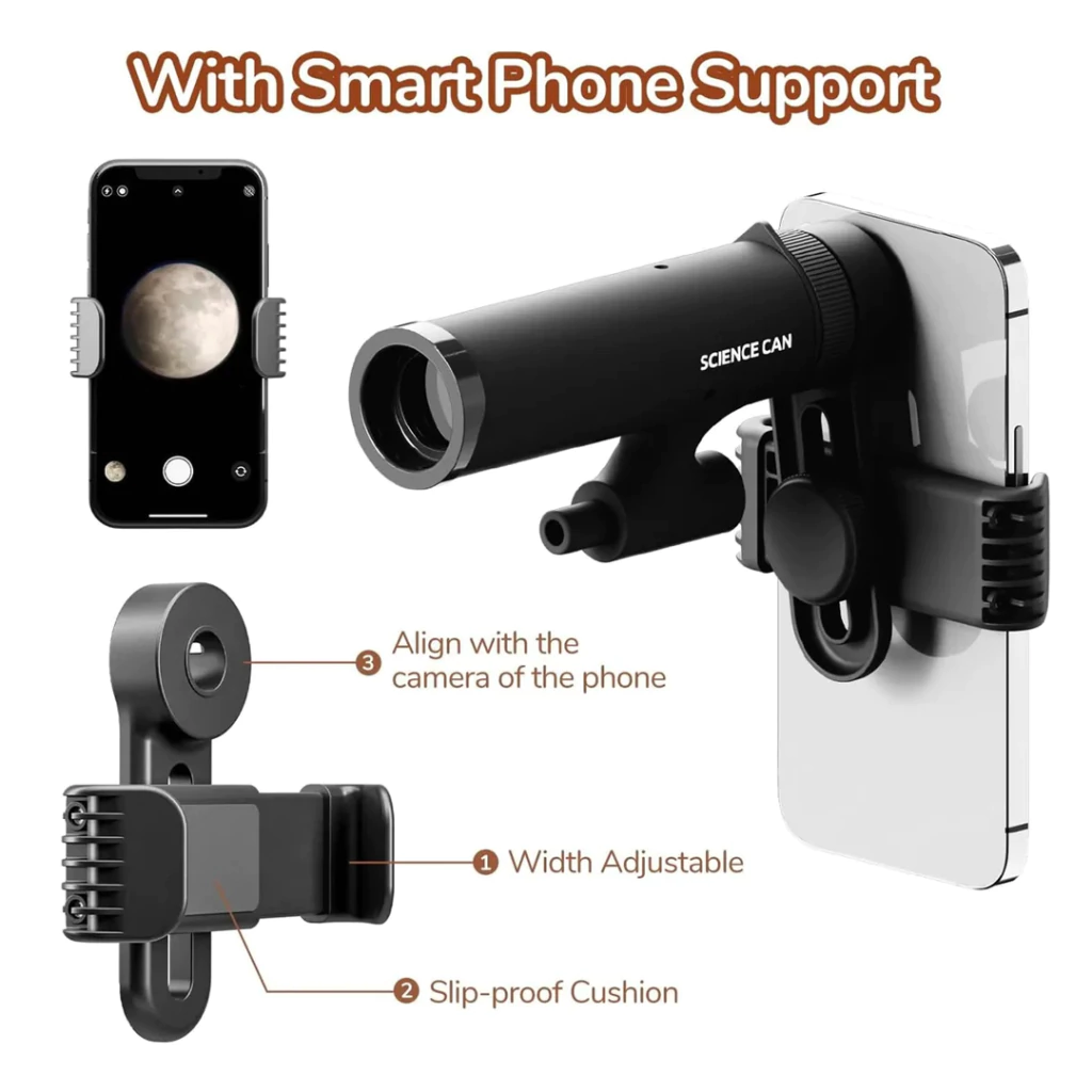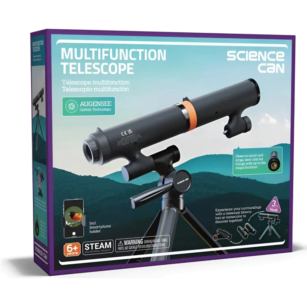 Incluye dos monoculares combinables, un trípode resistente y soporte para celular para sacar fotos de todos tus hallazgos. Su aumento de hasta 16x garantiza imágenes nítidas y sorprendentes. Ligero y compacto, podés llevarlo a cualquier lado y fomentar el amor por la ciencia, la naturaleza y la fotografía.