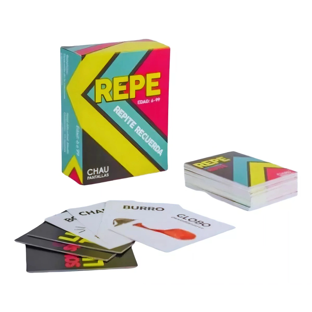 Chau Pantallas Repe Repite Recuerda es el juego ideal para disfrutar en familia a partir de los 6 años. Con 95 tarjetas y instrucciones claras, este juego ayuda al desarrollo de la memoria y la concentración.